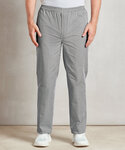 Elasticated waist for easy pull on trouser. Unisex sizing. Rear patch pocket and zip fly. Stocked in 30½” inside leg.