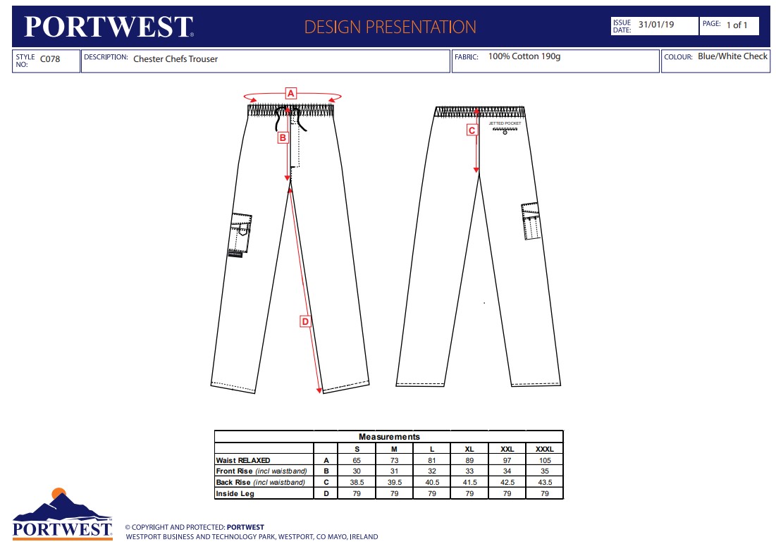 Practical, stylish and hardwearing, the Chester Chefs Trouser has an array of useful features including: a versatile thigh pocket, one hip pocket, concealed zip fastening, fully elasticated waist and drawcord.