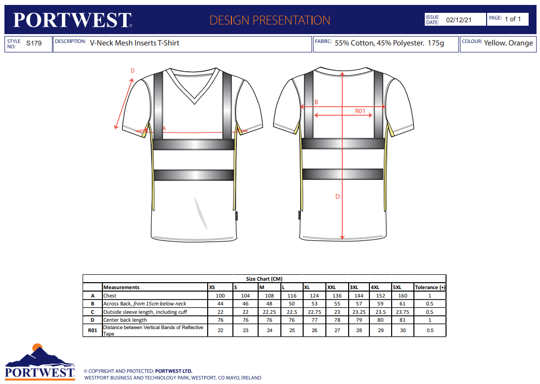 Datasheet - https://documents.portwest.com/datasheet.php?style=S179&lang=GB&itemcol=S179ORR&facility=902