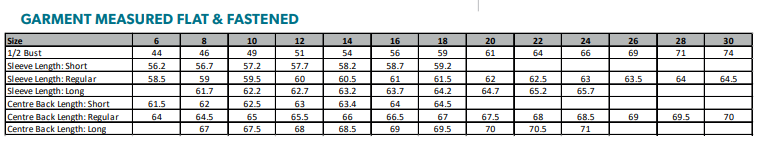 Centre back length at size 12R = 65.5cm