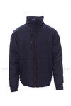Men’s jacket, 8 mm plastic zip with metal pull, foldaway hood, adjustable cuffs, two side pockets with zip, one breast pocket. Inside: padded with contrasting micro-fleece
