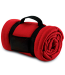 100% polyester. Polar fleece. Nylon carry handle. Tear out label.