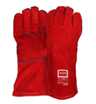 A high quality, traditional red welders gauntlet with a minimum leather thickness of 1.0mm.Includes a cotton lining to the cuff with a soft, comfortable fleecy lining to the glove area.Partial welting to the seams and finger tips and self hemmed.Available in standard, extended cuff (WGR-16) and double palm (WGR-DP) variations.